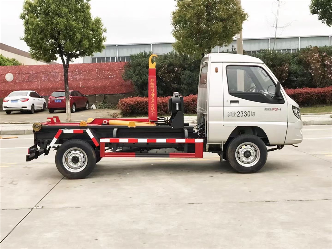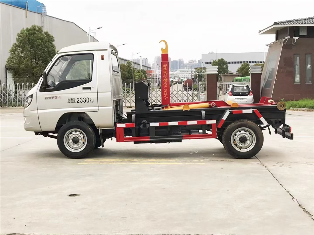 勾臂式垃圾車(車廂可卸式垃圾車)介紹: 車廂可卸式垃圾車又叫拉臂式垃圾車,是一種采用高新設計可伸縮的鉤臂,實現垃圾廂的二次吊裝,自吊上放下,可自行傾倒垃圾的環衛設備。 拉臂式垃圾車結構簡單,操作穩定方便,裝卸效率高,機械化程度高,節省人力。鉤臂垃圾車一車可帶多個垃圾廂,在裝卸的運輸過程中可有效地避免二次污染。 拉臂垃圾車采用高新設計可擺動的鉤臂,垃圾箱由框架、開啟油缸、滑輪、后門和若干加強框架與鋼板焊接而成。調換貨廂快捷方便,貨廂上帶蓋(倒垃圾時可翻開),鉤臂垃圾車垃圾廂體可選用碳鋼、不銹鋼材質、內部采取環氧樹脂防腐處理,改裝部分與原車底盤為可分離式,維修方便且保持了原車的機動性及行駛性能。